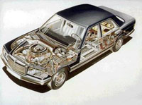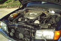 Fyrirsjáanlegur bensínskortur og hækkandi eldsneytisverð í heiminum nauðbeygði Mercedes-Benz verksmiðjurnar til að endurhanna stóru vélarnar sínar og hið svokallaða “Sparnaðaprógram” var kynnt. Reyndar stækkuðu þeir vélarnar í sumum tilfellum t.d 3,5 l vélin varð 3,8 l og 4,5 l vélin varð 5,0 en á móti kom að 5,0 lítra vélin leysti 6,9 lítra vélina af hólmi og 3,8 lítra vélin kom í stað 4,5 svo MB sýndi fram á minni vélastærðir. Árið 1985 bættist 2,6 lítra 6 strokka vél sem leysti hina gömlu 2,8 lítra vél af hólmi.